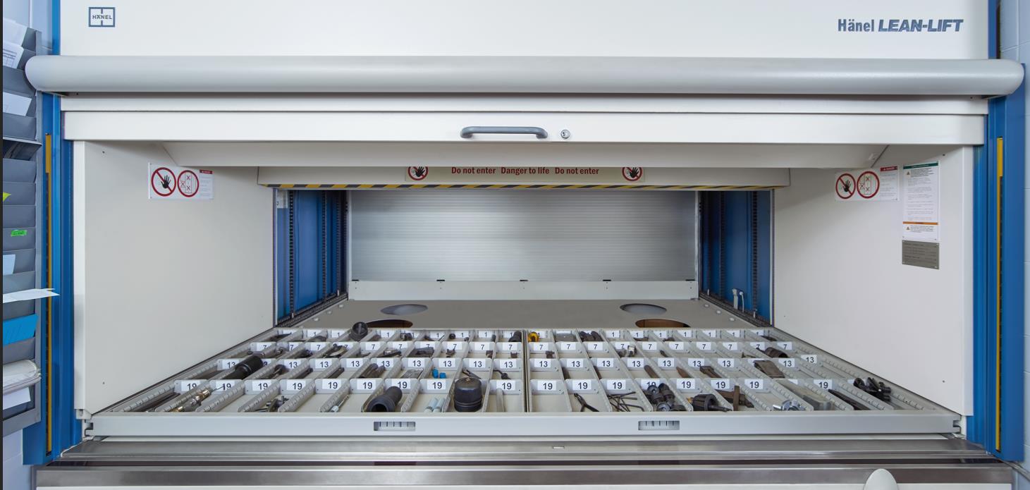1. 亨乃爾(Haenel) 垂直升降貨柜:托盤做內(nèi)部做金屬分割條,便于存取擺放。加上亨乃爾智能倉儲軟件,更加精確記錄和存取物料。